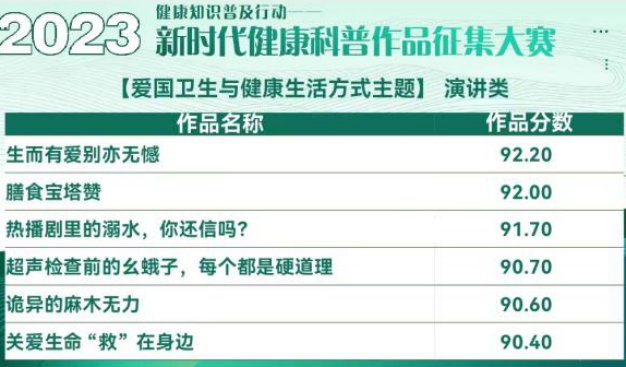 参赛的选手们,都是来自临床一线的专业技术人员,有主任医师、副主任医师,副主任护师等等,还有参加工作不足5年的青年骨干,他们在繁忙的临床工作之余,在不脱产的情况下,从各自专业出发,找准群众和患者疾病和就医的痛点、盲点、误区,用生动多样的科普文章、短视频、演讲演示、海报等形式,使患者不仅了解了疾病的发病原因,更学习了防控疾病的方法。